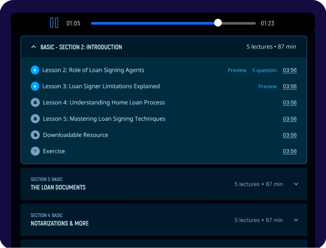 Learn to become a notary loan signing agent in your own time and place with this interactive online course. Our user-friendly learning materials will give you the knowledge and practical skills to successfully the most important components of running a successful notary signing agent business from A to Z.